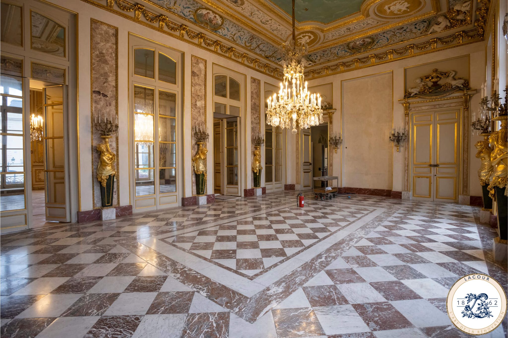 Par la suite, Christian LACOUR, petit-fils de Martial, prend la tête de l’entreprise. Fort de relations étroites avec de jeunes architectes et soutenu par les conservateurs du Palais de l’Élysée, il mène en 1982 le chantier de restauration de la salle des fêtes de l’Élysée, à l’initiative du président François Mitterrand.